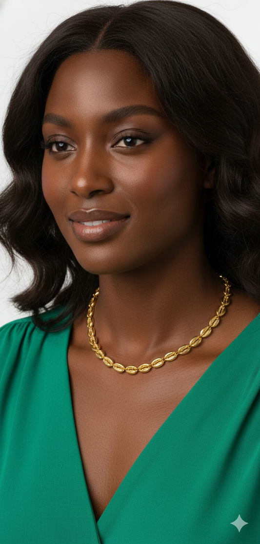 Bohemian Cowrie Shells Gold Color Chocker Necklace Material is Stainless Steel and 18 Karat...