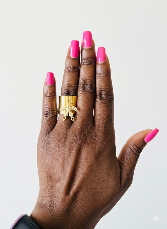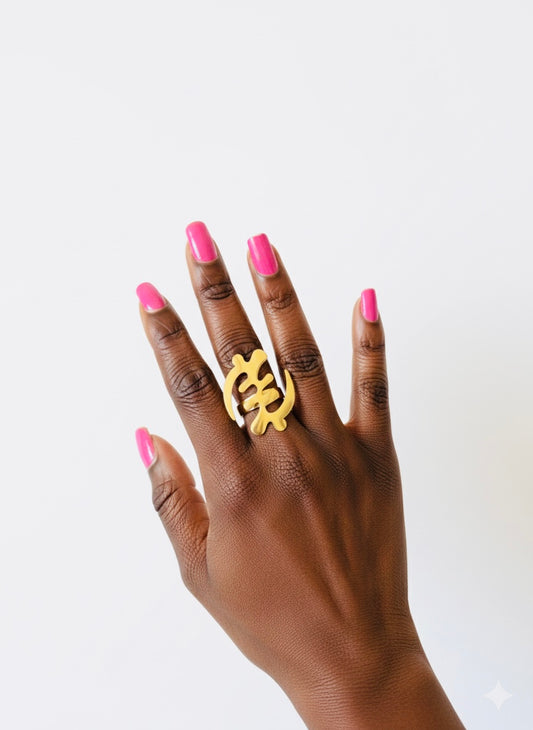 Gye Nyame Adinkra Adjustable Size Gold Ring. Material is Stainless Steel and 18 Karat...