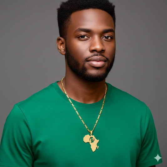 Gold African Map Gye Nyame Adinkra Hollow cut out necklace. Material is Stainless Steal and...