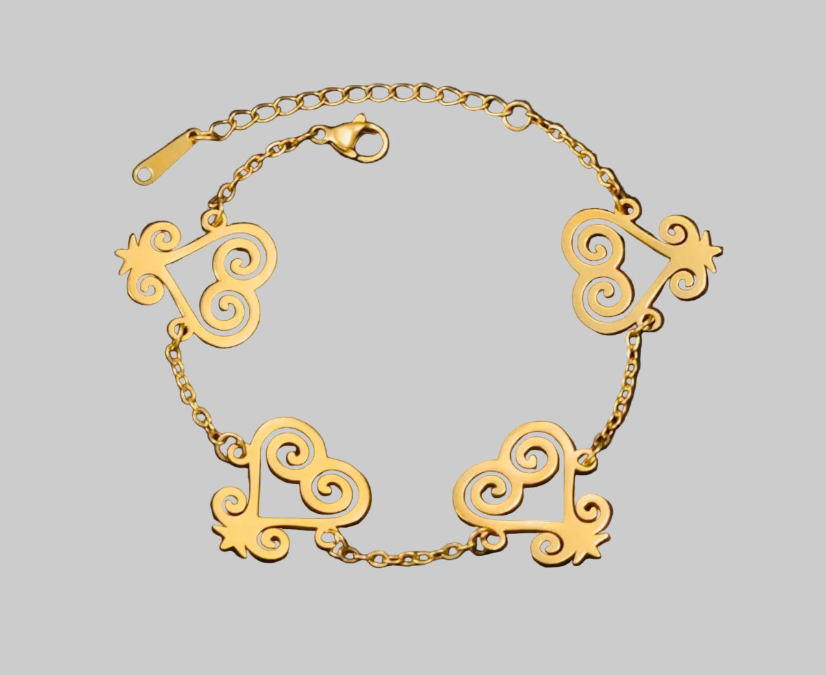 Sankofa Adinkra Charms Gold Bracelet.